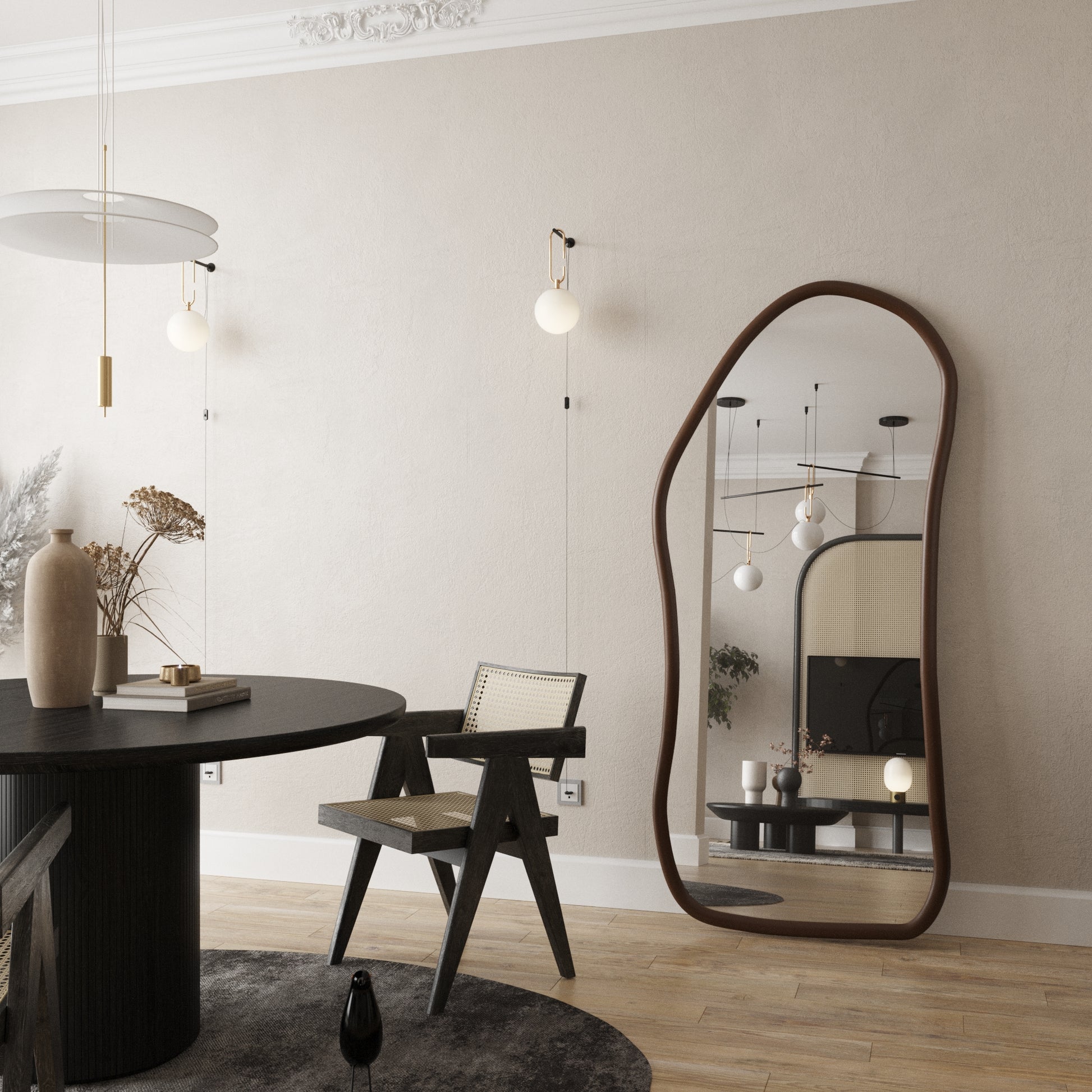 - Full-length mirror with free-form, irregular shape