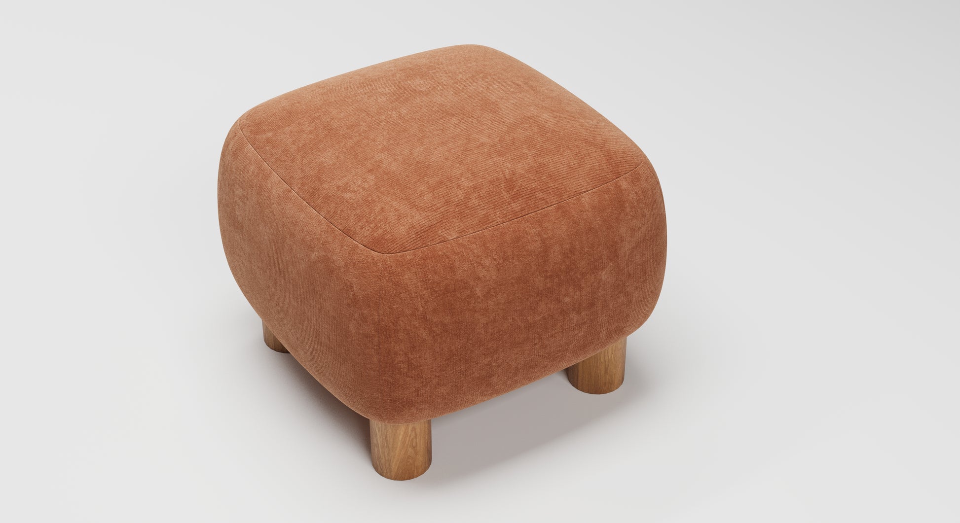 Add a playful and contemporary accent to your interior with the Lingo Pouffe. Its uniquely rounded rectangular shape brings both charm and comfort, while a pop of warm color and rich texture livens up any space. Supported by four solid, tapered wood legs, it subtly nods to mid-century design, making it perfect as a footrest, extra seating, or stylish accent piece.